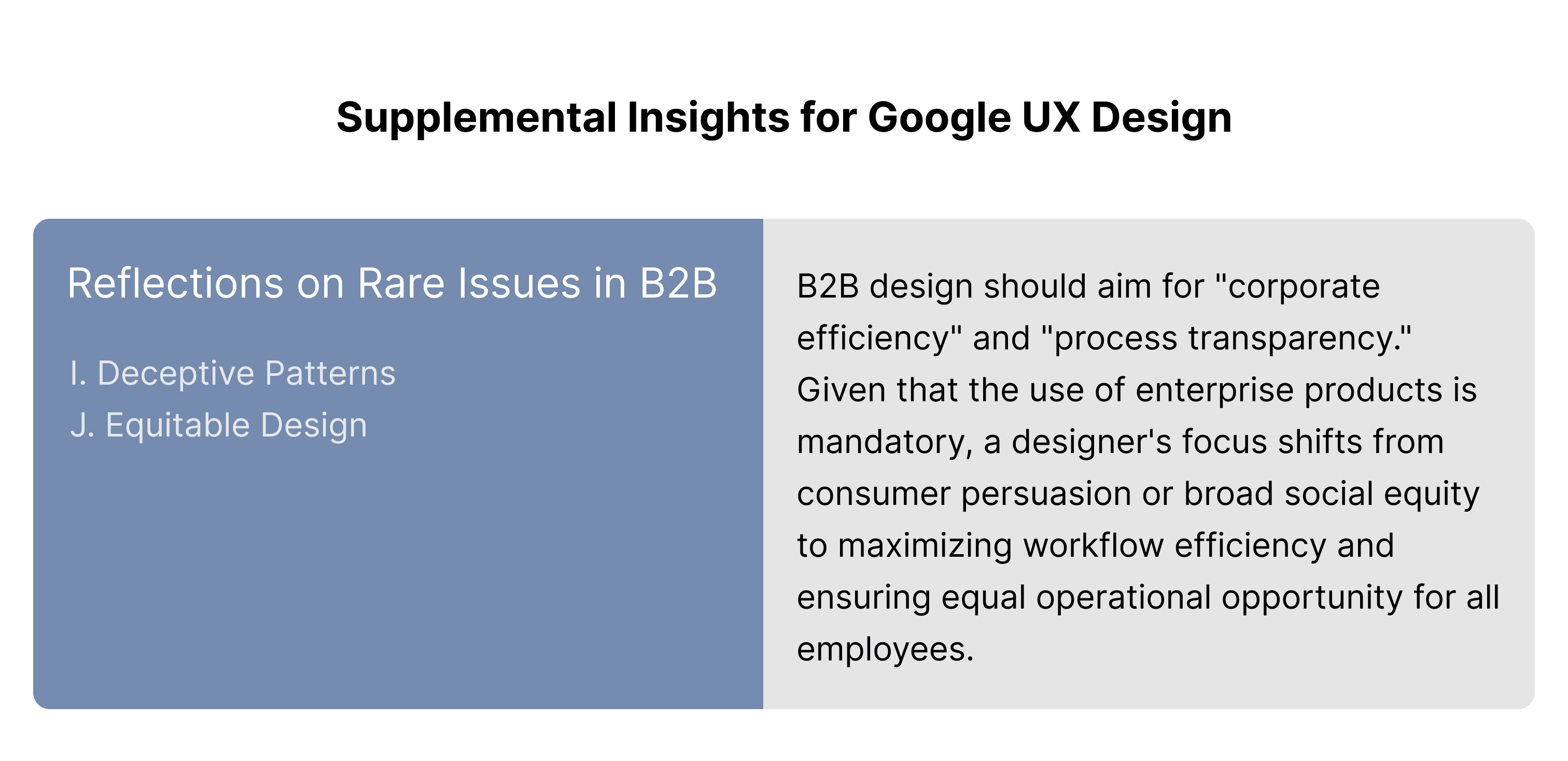 Regardless of that VP’s management style, I also went ahead and earned my Google UX Design certificate this year. Through the Google UX curriculum, I realized that when shifting from a consumer-facing (C-end) mindset to a business (B-end) environment, "cognitive gaps" can directly stall a project's progress.
