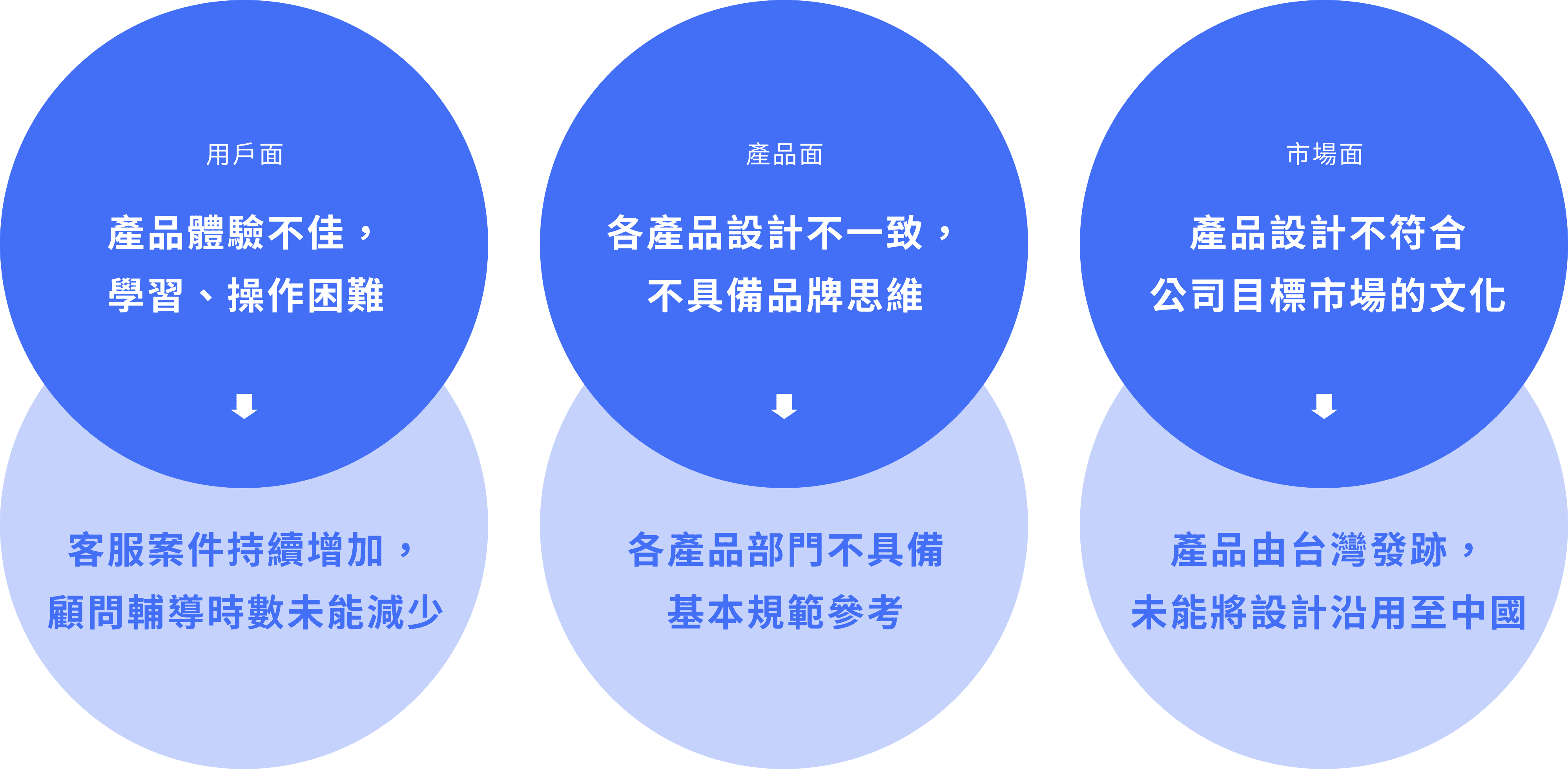 然而,不同裝置、職能和國家的操作習慣各異,在這個專案中,我們希望將大方向的品牌規劃收斂至產品設計作為起點,儘管如此,同時佈達 10 個產品也是一大範疇,若未經深度調研的情況下貿然改變產品操作界面,可能會阻礙新客戶市場的拓展,並引發現有客戶的負面反應。