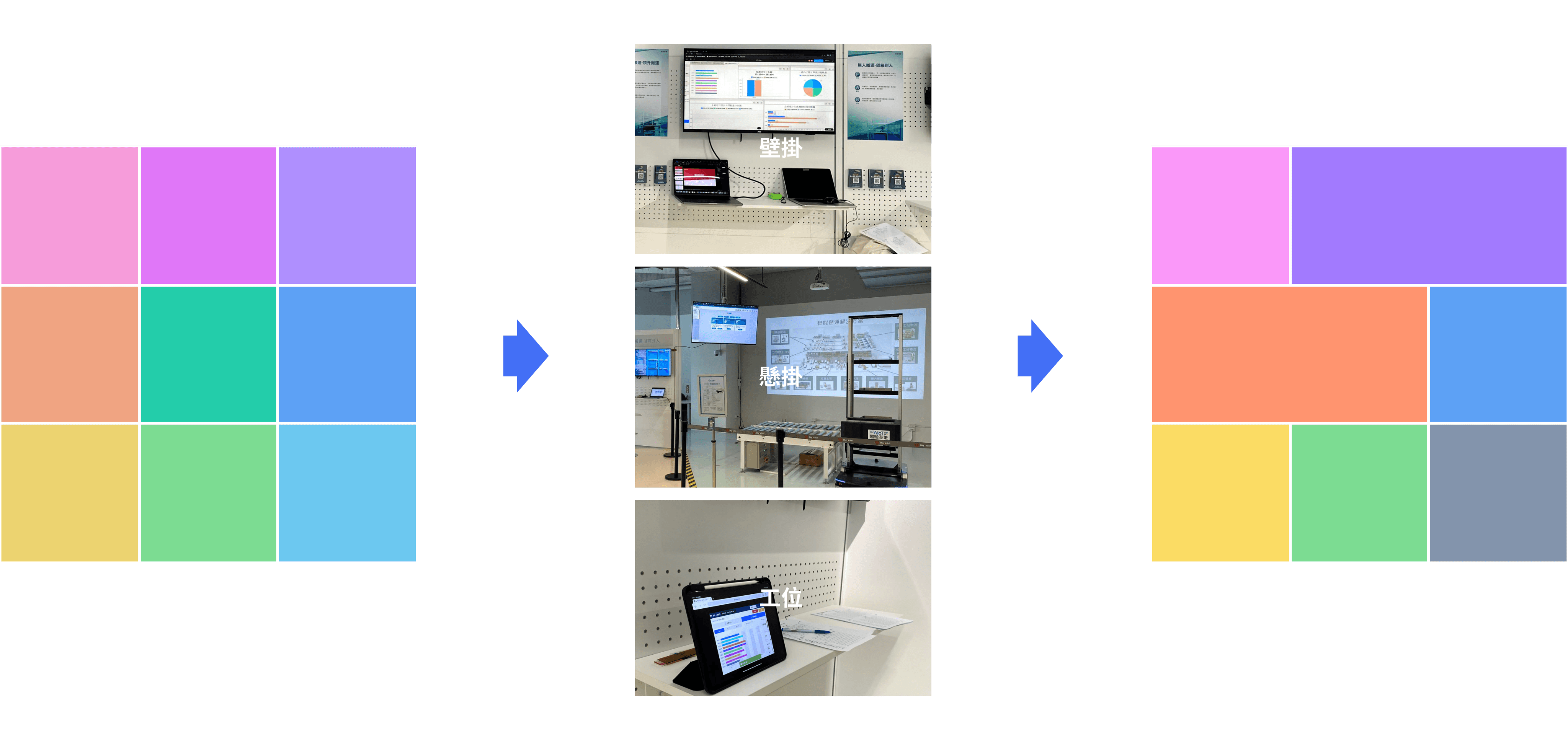 為了同時滿足前線人員呈現給客戶看時取得亮眼成績及車間使用者有效的操作體驗,影響色彩的落點、比例原則和環境等議題,能統一品牌設計,搭配裝置的體驗優化,能提升整個車間的互動體驗,形成貼合的生態系。