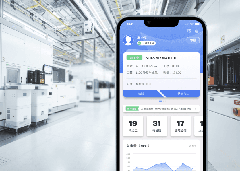 車間人員工作細分,使用者依職能不同,可自定義常用模組做為首頁,滿足車間單一化工作流程。