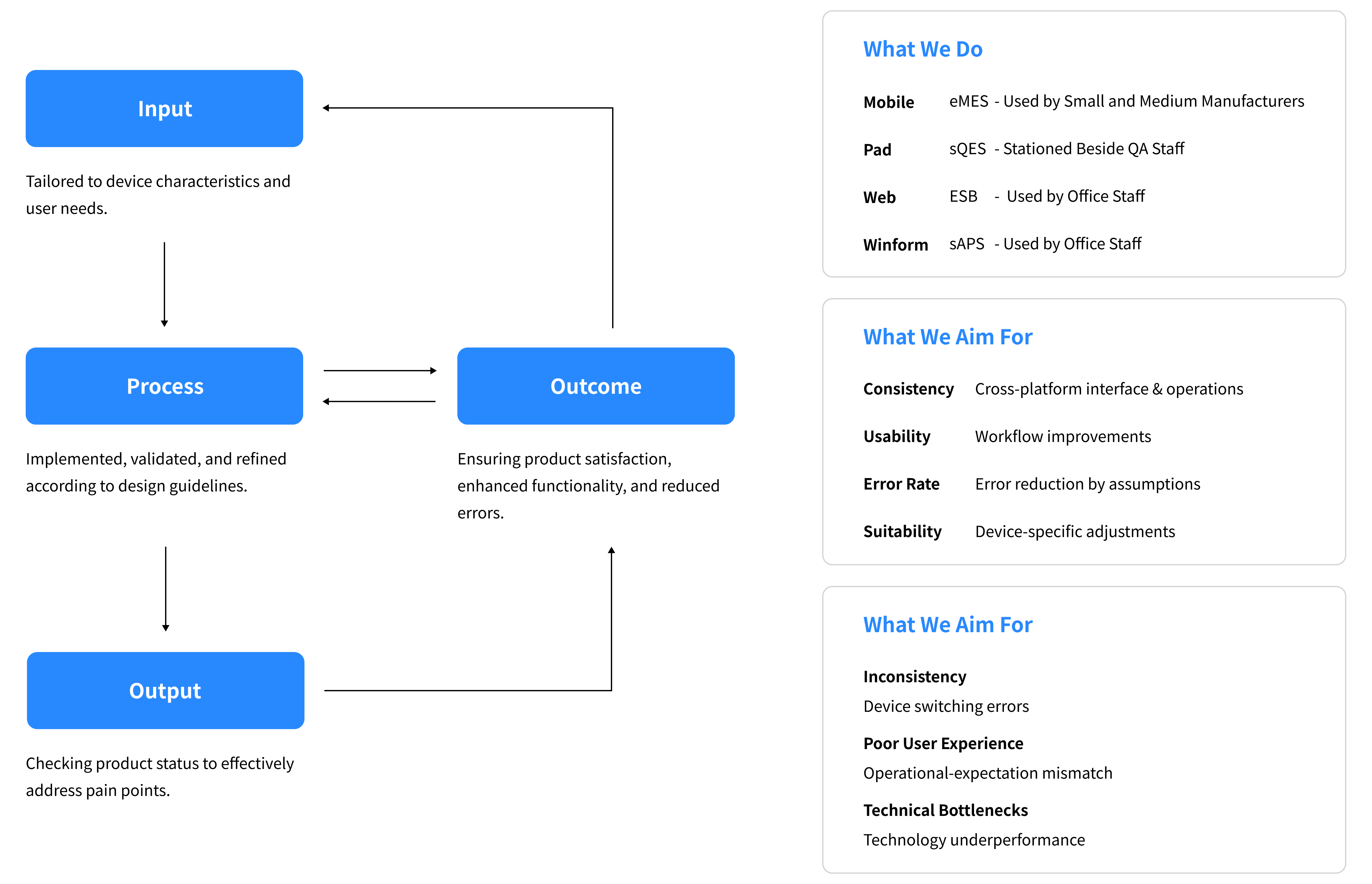 Unlike generic design systems, we optimized our four-device framework for two distinct efficiency goals: Execution Speed and Observation Speed. Our system ensures that operational tasks are frictionless (Execution) and critical issues are immediately discoverable (Observation) across all industrial scenarios."