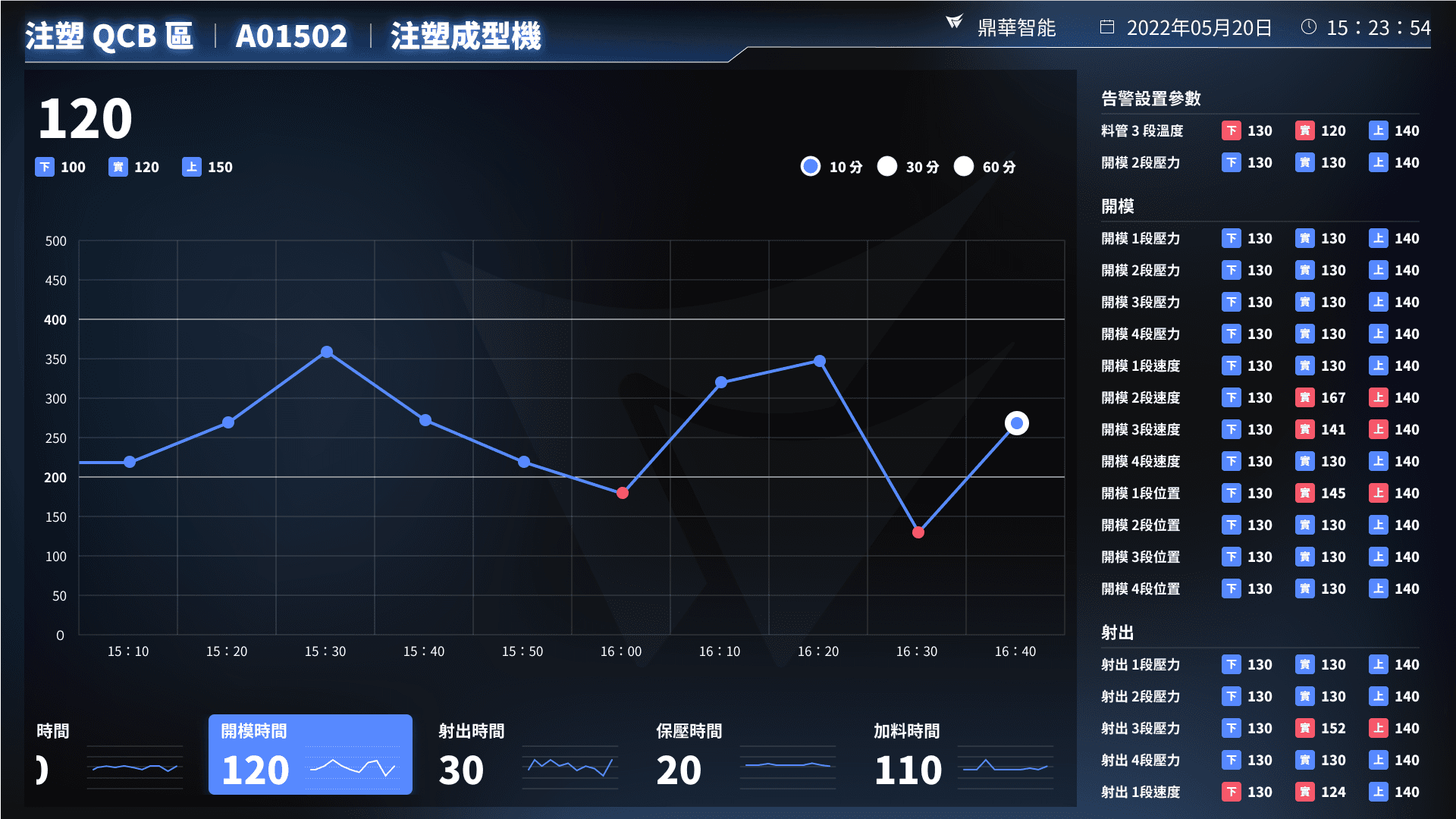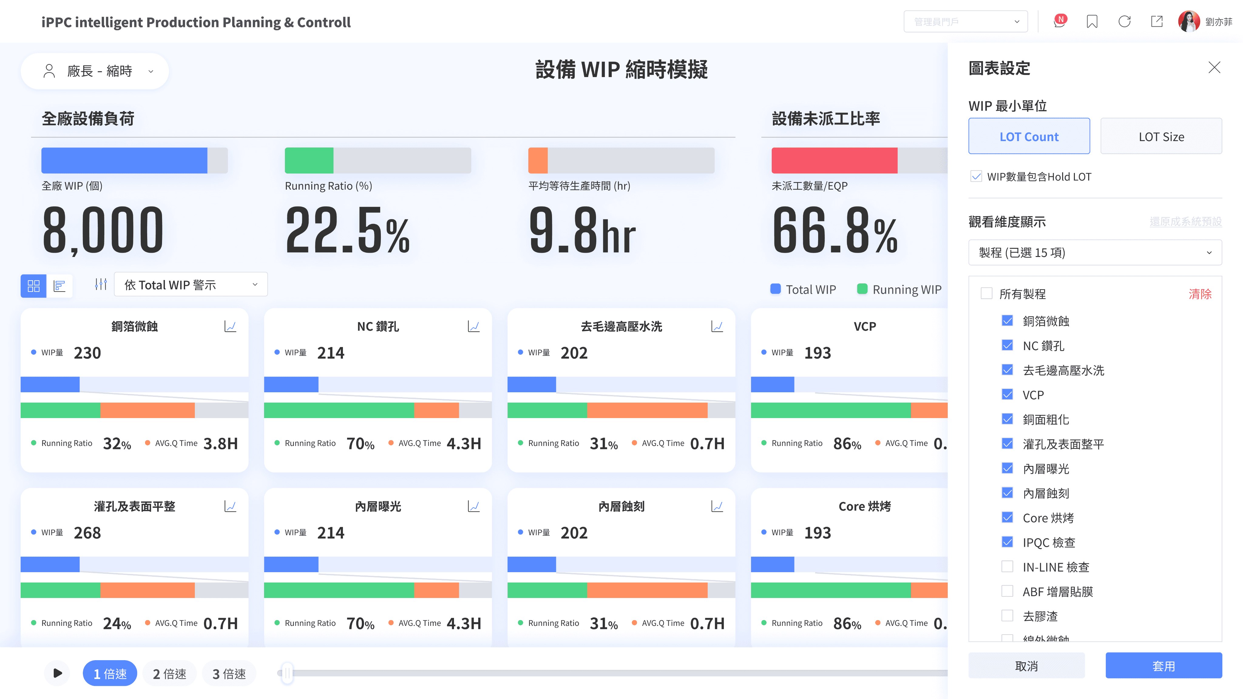 我們發現此類系統,客戶皆會以電腦連接,以 1:1 的方式投影呈現。為了能夠即時監控與反應,我們透過可視化的統計圖幫助客戶快速理解,並將關鍵數據放大字體,達到提升生產效率的目標。