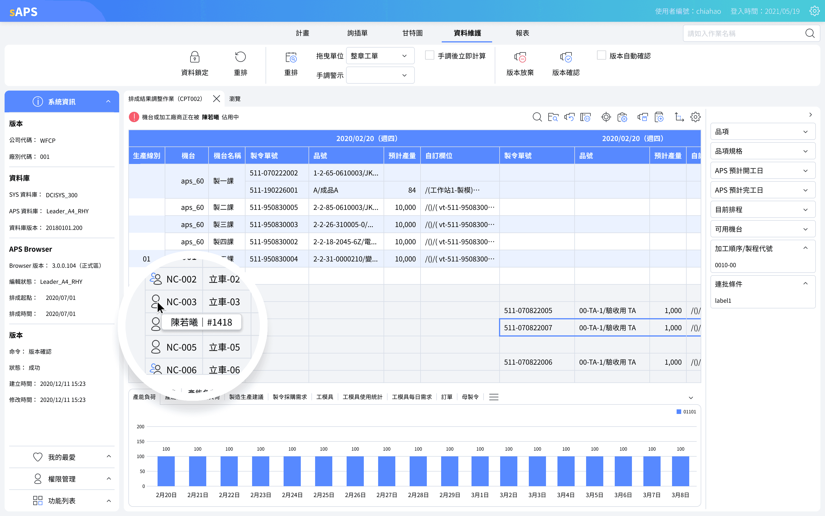 When fetching data, any Manufacturing Order (MO) currently being adjusted will display the editor's name and avatar. To prevent redundant work, these MOs are visually greyed out to indicate they are temporarily non-actionable.